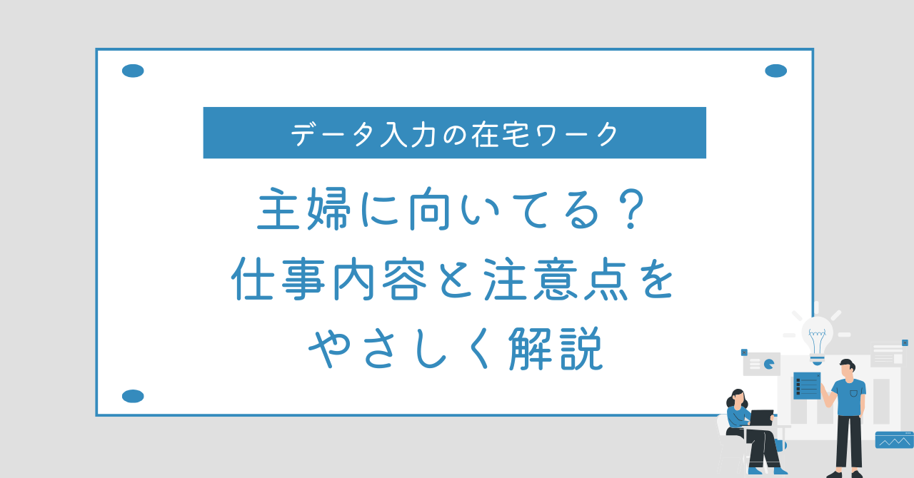 データ入力の在宅ワークは、特別なスキルがなくても始めやすく、 主婦にとって在宅ワークの第一歩として選ばれやすい仕事です。